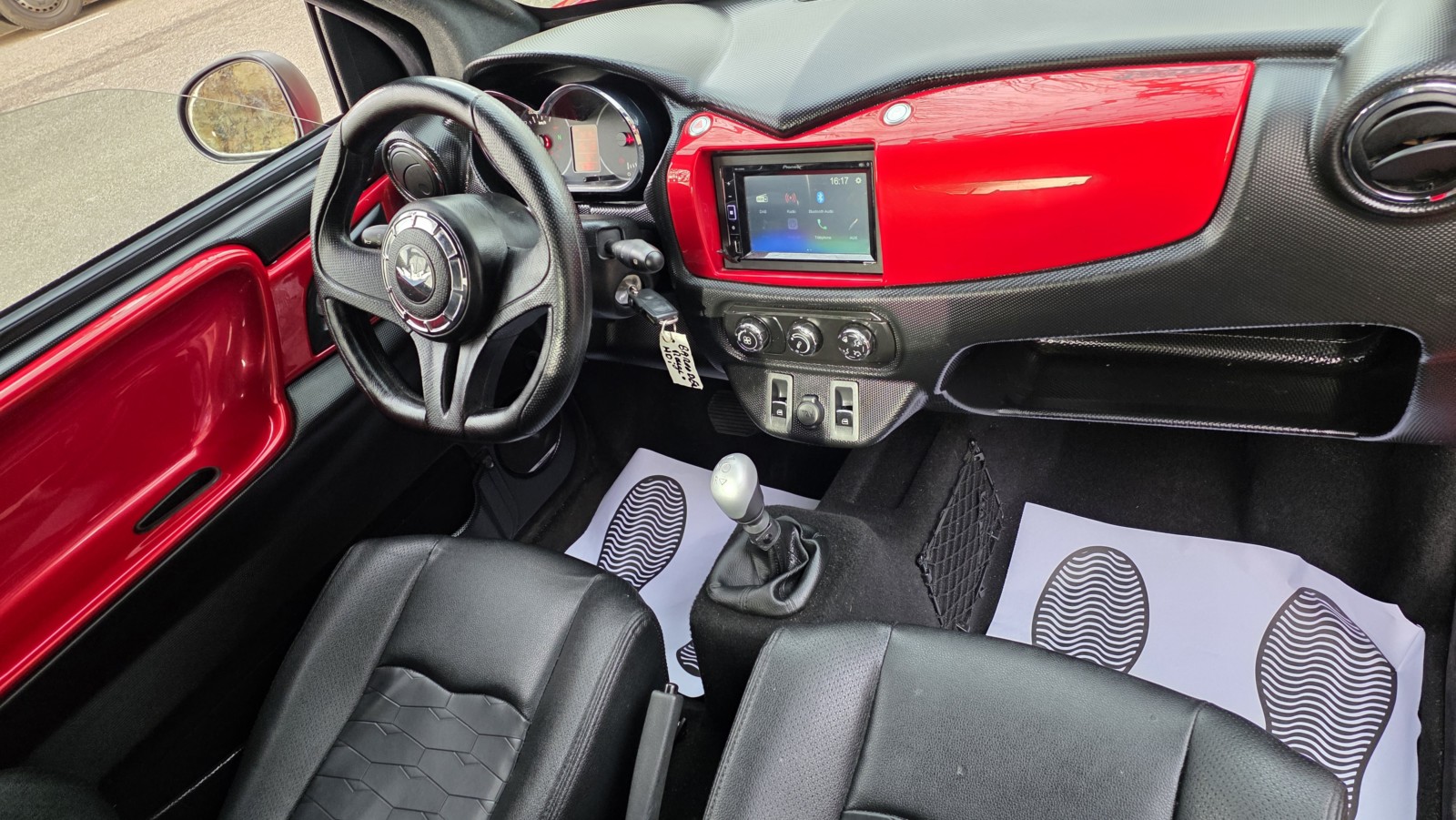 OPTIONS : VITRES ELECTRIQUES - RADAR AV – CENTRALISATION A DISTANCE – JANTES 15 “ SPORT DIAMANTEES NOIR MAT – ECRAN MULTIMEDIA DOUBLE DIN AVEC BLUETOOTH SANS CAMERA DE RECUL - ETRIERS DE FREINS ROUGE – DECO EXTERIEUR SPECIFIQUE 3 BANDES LATERALES – ECHAPPEMENT DOUBLE SORTIES…